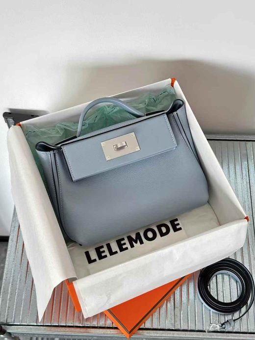 LeLeMode Mini Kelly 2424 Evercolor & Swift Leather Linen Blue Silver Hardware 21cm Full Handmade Phw